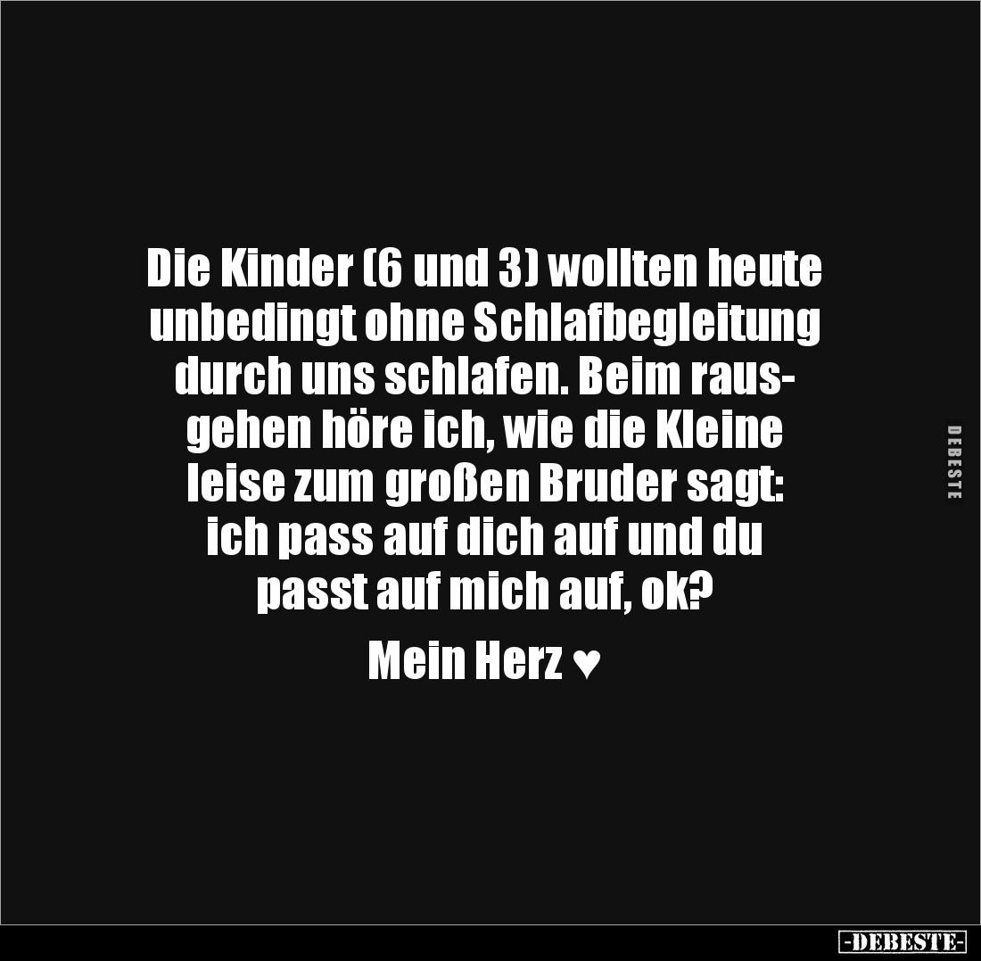 Die Kinder (6 und 3) wollten heute unbedingt ohne Schlafbegleitung durch uns schlafen. Beim raus- gehen höre ich, wie die Kleine leise zum großen Bruder sagt: ich pass auf dich auf und du passt auf mich auf, ok? Mein Herz ♥