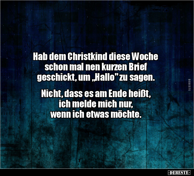 Hab dem Christkind diese Woche schon mal nen kurzen Brief geschickt, um „Hallo" zu sagen. Nicht, dass es am Ende heißt, ich melde mich nur, wenn ich etwas möchte.