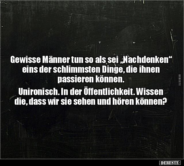 Gewisse Männer tun so als sei „Nachdenken“ eins der schlimmsten Dinge, die ihnen passieren können. Unironisch. In der Öffentlichkeit. Wissen die, dass wir sie sehen und hören können?