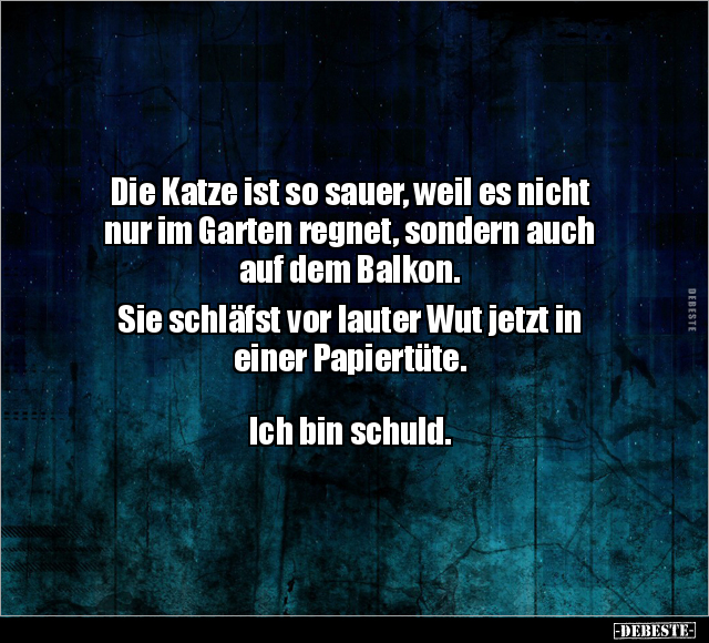 Die Katze ist so sauer, weil es nicht nur im Garten regnet, sondern auch auf dem Balkon. Sie schläfst vor lauter Wut jetzt in einer Papiertüte. Ich bin schuld.