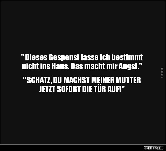 " Dieses Gespenst lasse ich bestimmt nicht ins Haus. Das macht mir Angst." " SCHATZ, DU MACHST MEINER MUTTER JETZT SOFORT DIE TÜR AUF!"