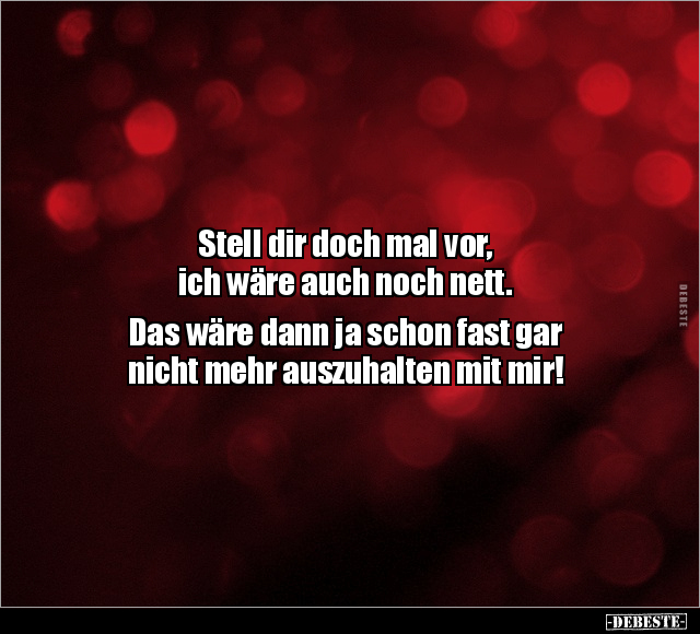 Stell dir doch mal vor, ich wäre auch noch nett. Das wäre dann ja schon fast gar nicht mehr auszuhalten mit mir!