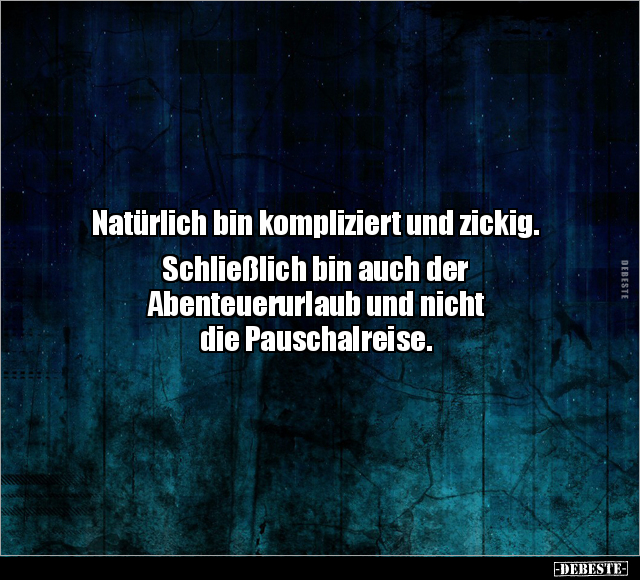 Natürlich bin kompliziert und zickig. Schließlich bin auch der Abenteuerurlaub und nicht die Pauschalreise.