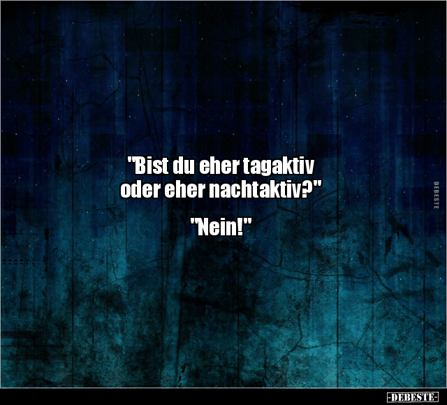"Bist du eher tagaktiv oder eher nachtaktiv?" "Nein!"