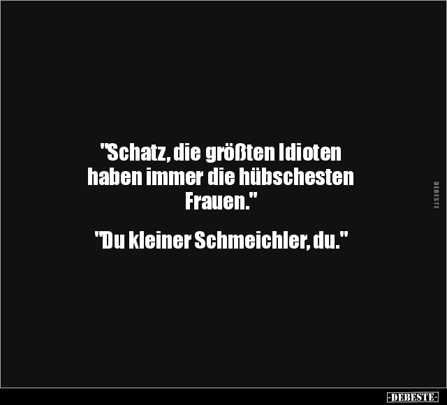 "Schatz, die größten Idioten haben immer die hübschesten Frauen." "Du kleiner Schmeichler, du."