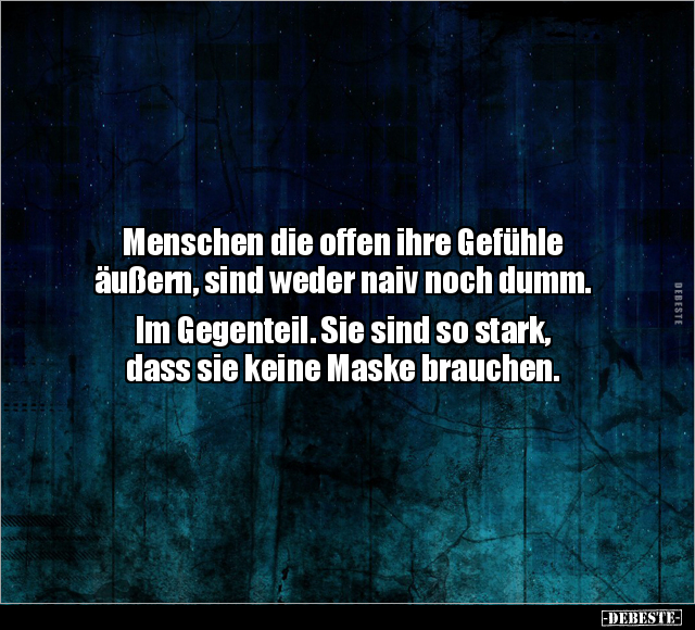 Menschen die offen ihre Gefühle äußern, sind weder naiv noch dumm. Im Gegenteil. Sie sind so stark, dass sie keine Maske brauchen.