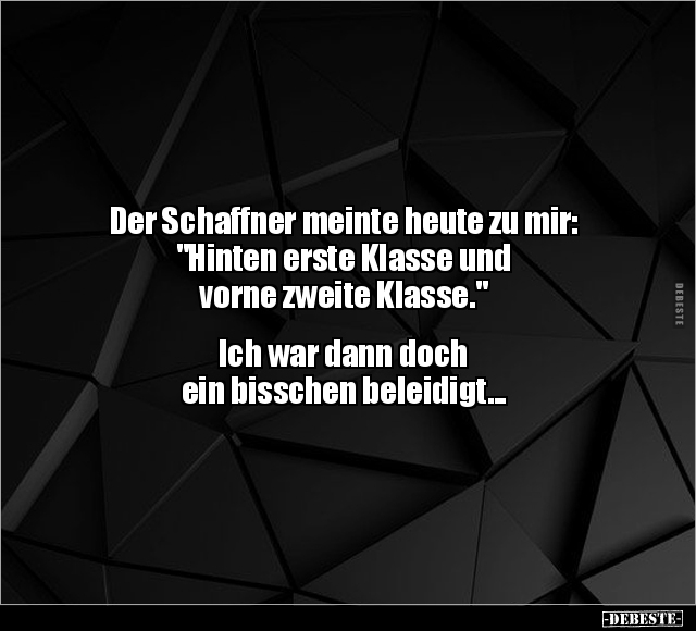 Der Schaffner meinte heute zu mir: "Hinten erste Klasse und vorne zweite Klasse." Ich war dann doch ein bisschen beleidigt...