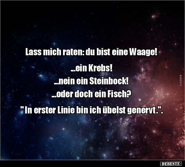 Lass mich raten: du bist eine Waage! ...ein Krebs! ...nein ein Steinbock! ...oder doch ein Fisch? " In erster Linie bin ich übelst genervt.".