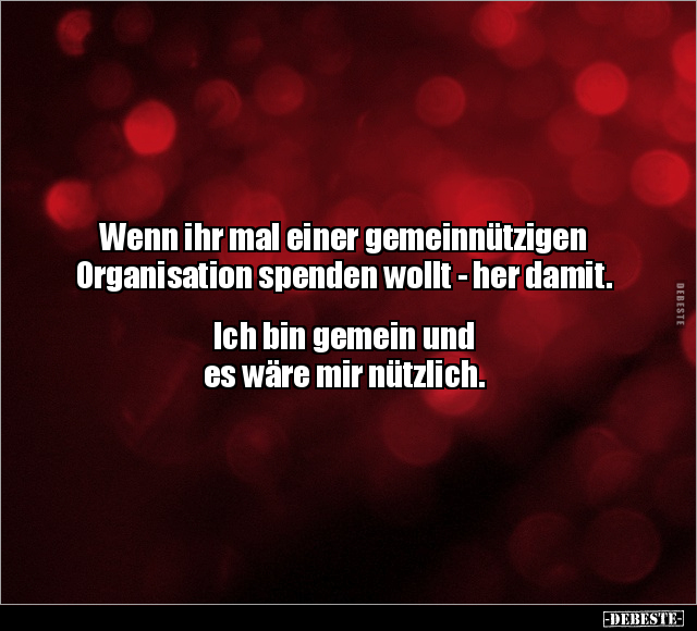Wenn ihr mal einer gemeinnützigen Organisation spenden wollt - her damit. Ich bin gemein und es wäre mir nützlich.