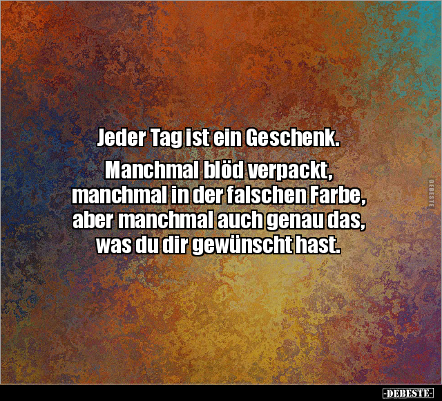Jeder Tag ist ein Geschenk. Manchmal blöd verpackt, manchmal in der falschen Farbe, aber manchmal auch genau das, was du dir gewünscht hast.