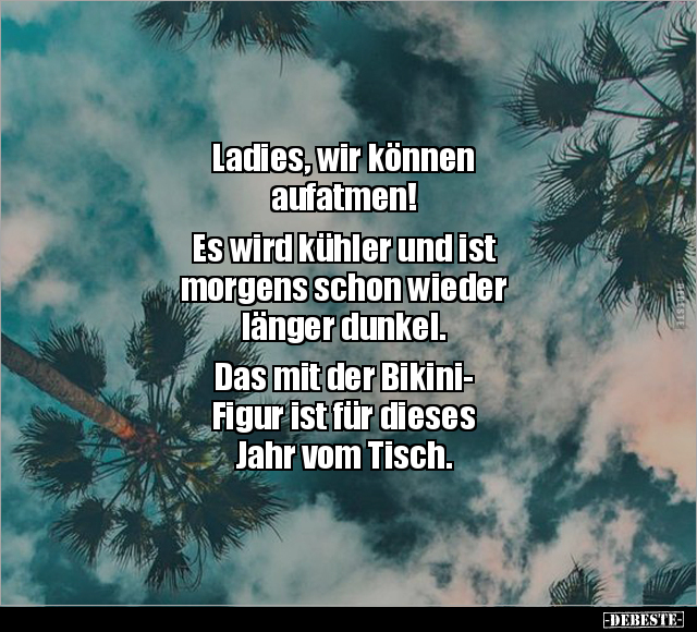 Ladies, wir können aufatmen! Es wird kühler und ist morgens schon wieder länger dunkel. Das mit der Bikini- Figur ist für dieses Jahr vom Tisch.