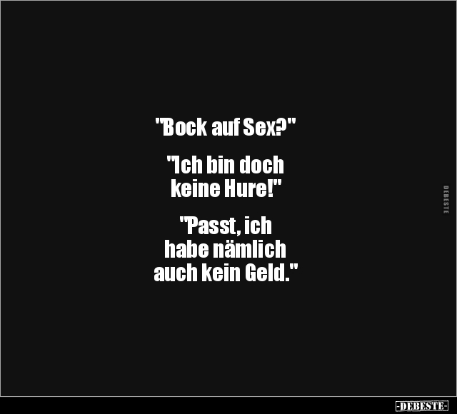 "Bock auf Sex?" "Ich bin doch keine Hure!" "Passt, ich habe nämlich auch kein Geld."