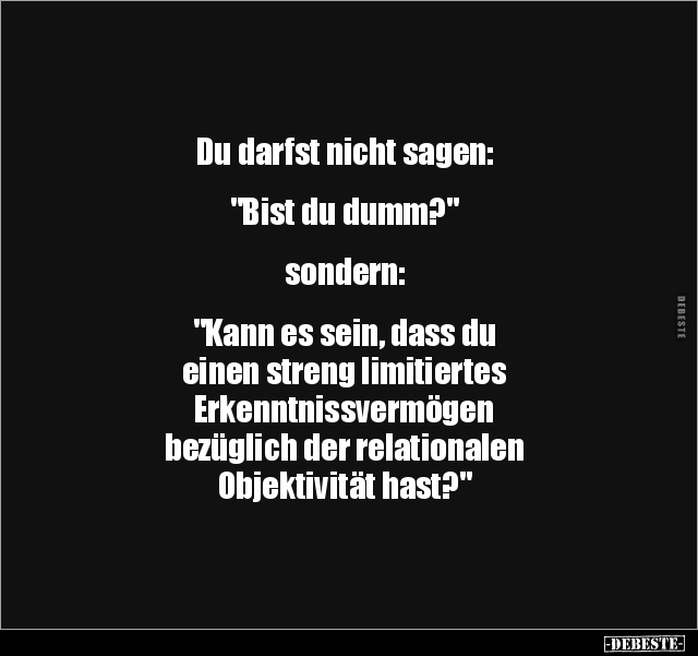 Du darfst nicht sagen: "Bist du dumm?" sondern: "Kann es sein, dass du einen streng limitiertes Erkenntnissvermögen bezüglich der relationalen Objektivität hast?"
