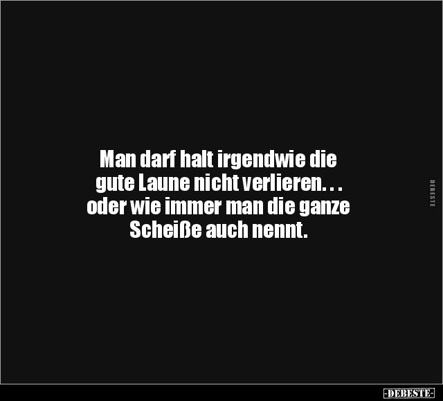 Man darf halt irgendwie die gute Laune nicht verlieren. . . oder wie immer man die ganze Scheiße auch nennt.
