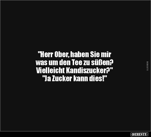 "Herr Ober, haben Sie mir was um den Tee zu süßen? Vielleicht Kandiszucker?" "Ja Zucker kann dies!"