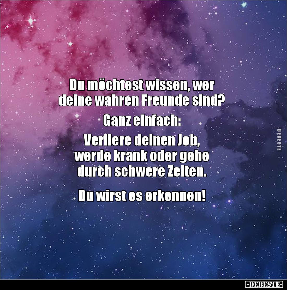 Du möchtest wissen, wer deine wahren Freunde sind? Ganz einfach: Verliere deinen Job, werde krank oder gehe durch schwere Zeiten. Du wirst es erkennen!