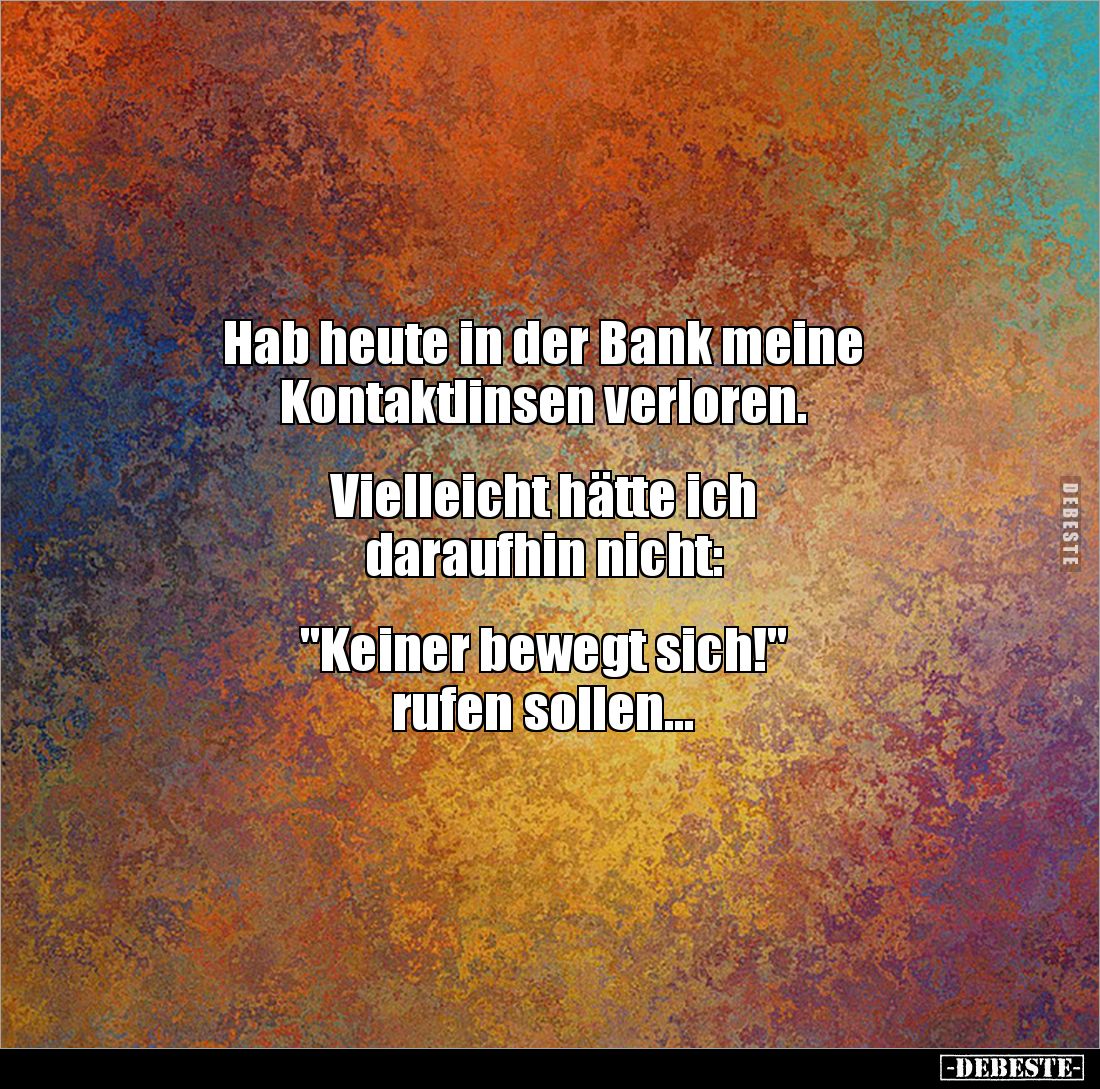Hab heute in der Bank meine Kontaktlinsen verloren. Vielleicht hätte ich daraufhin nicht: "Keiner bewegt sich!" rufen sollen...
