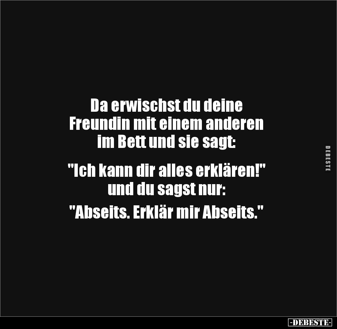 Da erwischst du deine Freundin mit einem anderen im Bett und sie sagt: "Ich kann dir alles erklären!" und du sagst nur: "Abseits. Erklär mir Abseits."