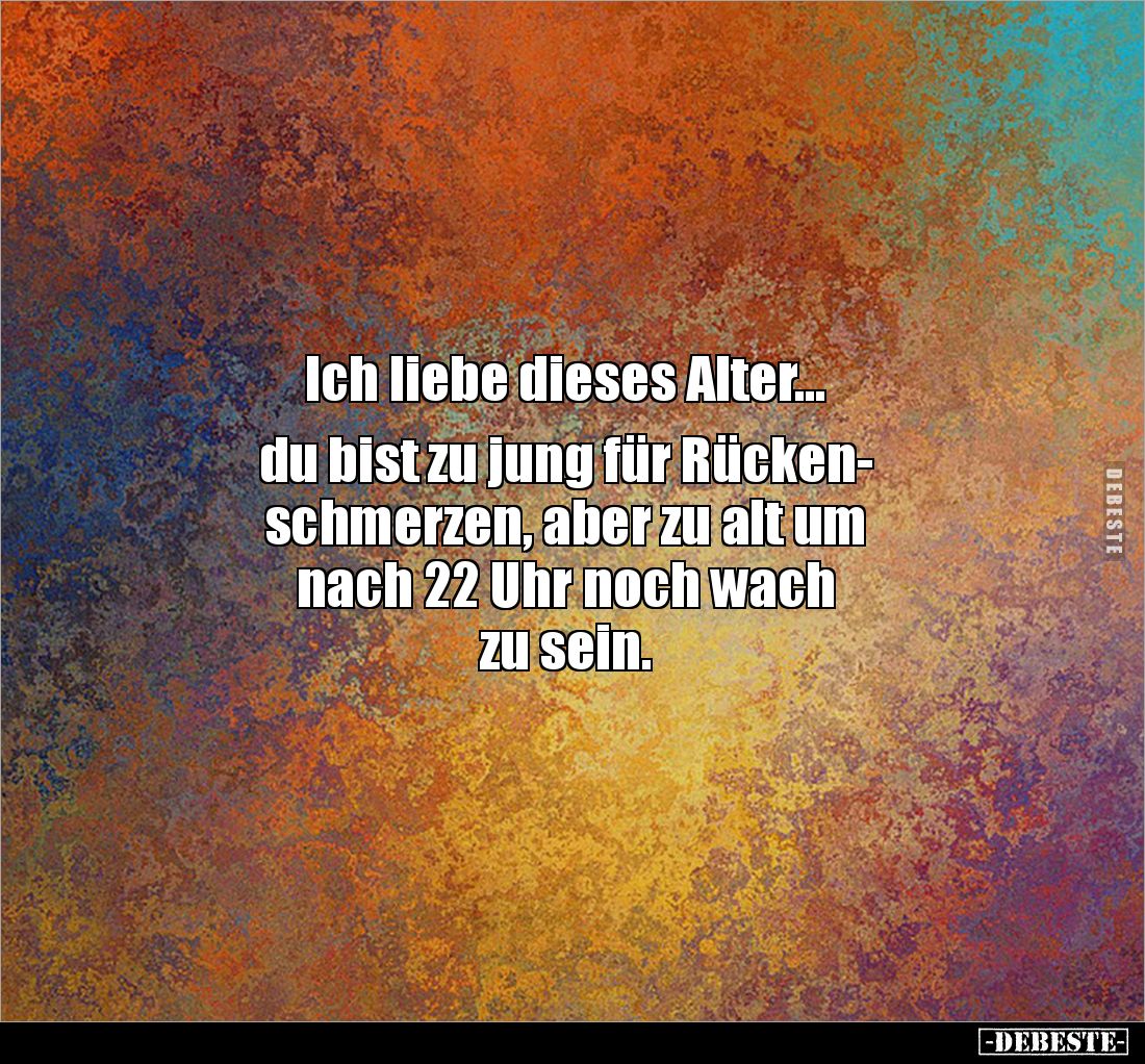Ich liebe dieses Alter… du bist zu jung für Rücken- schmerzen, aber zu alt um nach 22 Uhr noch wach zu sein.