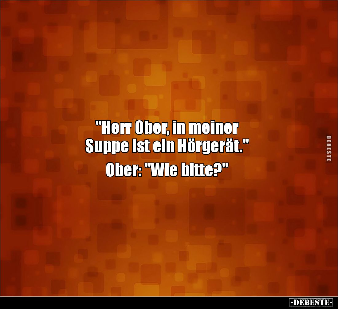"Herr Ober, in meiner Suppe ist ein Hörgerät." Ober: "Wie bitte?"