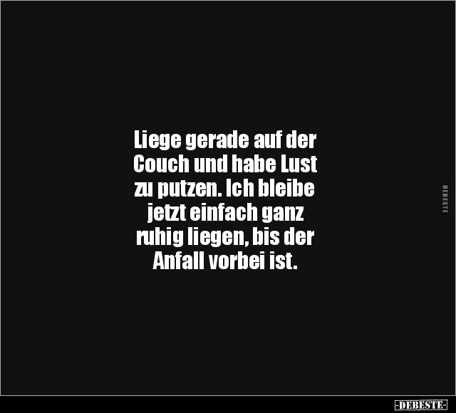 Liege gerade auf der Couch und habe Lust zu putzen. Ich bleibe jetzt einfach ganz ruhig liegen, bis der Anfall vorbei ist.