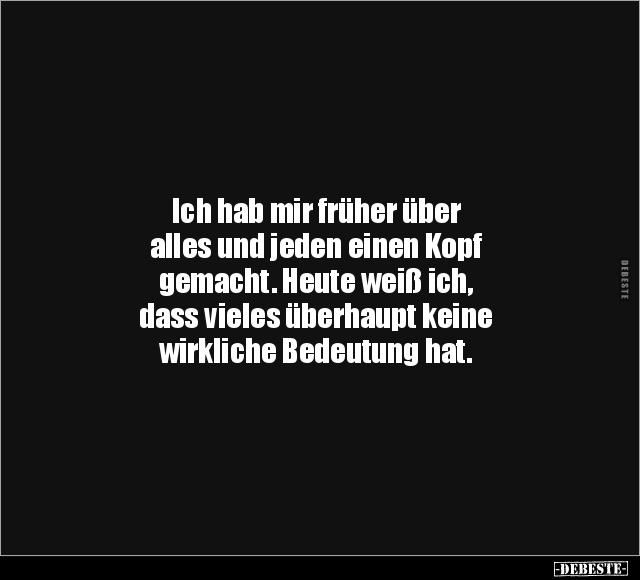 Ich hab mir früher über alles und jeden einen Kopf gemacht. Heute weiß ich, dass vieles überhaupt keine wirkliche Bedeutung hat.