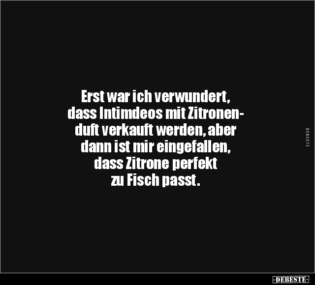 Erst war ich verwundert, dass Intimdeos mit Zitronen- duft verkauft werden, aber dann ist mir eingefallen, dass Zitrone perfekt zu Fisch passt.