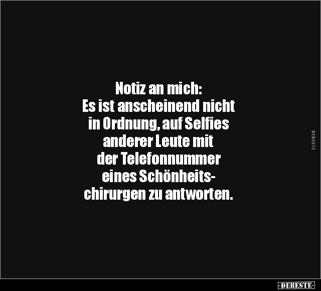 Notiz an mich: Es ist anscheinend nicht in Ordnung, auf Selfies anderer Leute mit der Telefonnummer eines Schönheits- chirurgen zu antworten.