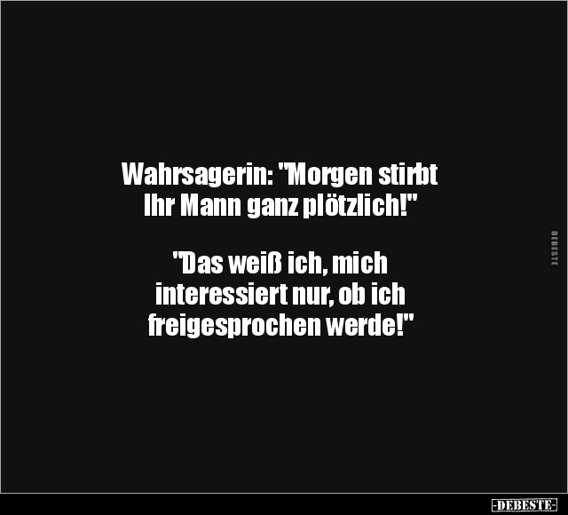 Wahrsagerin: "Morgen stirbt Ihr Mann ganz plötzlich!" "Das weiß ich, mich interessiert nur, ob ich freigesprochen werde!"