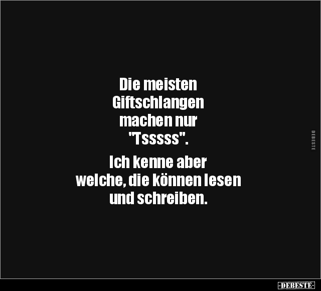 Die meisten Giftschlangen machen nur "Tsssss". Ich kenne aber welche, die können lesen und schreiben.