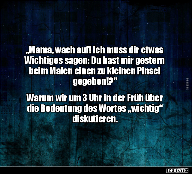 „Mama, wach auf! Ich muss dir etwas Wichtiges sagen: Du hast mir gestern beim Malen einen zu kleinen Pinsel gegeben!?" Warum wir um 3 Uhr in der Früh über die Bedeutung des Wortes „wichtig“ diskutieren.