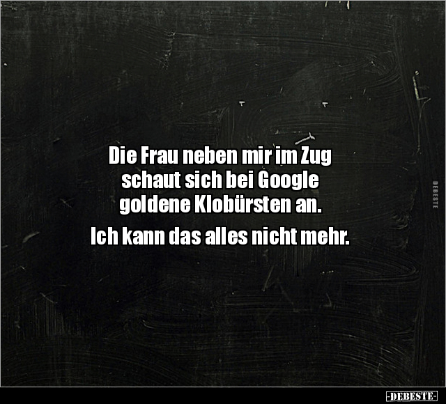 Die Frau neben mir im Zug schaut sich bei Google goldene Klobürsten an. Ich kann das alles nicht mehr.