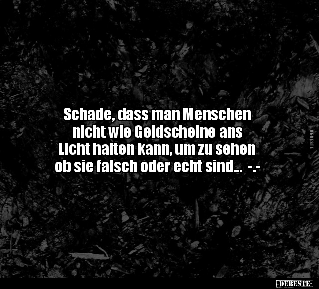 Schade, dass man Menschen nicht wie Geldscheine ans Licht halten kann, um zu sehen ob sie falsch oder echt sind... -.-