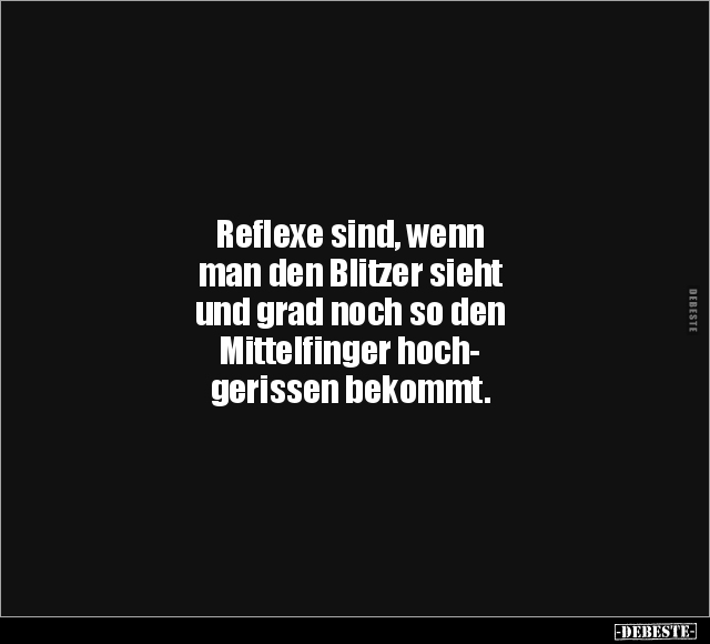 Reflexe sind, wenn man den Blitzer sieht und grad noch so den Mittelfinger hoch- gerissen bekommt.