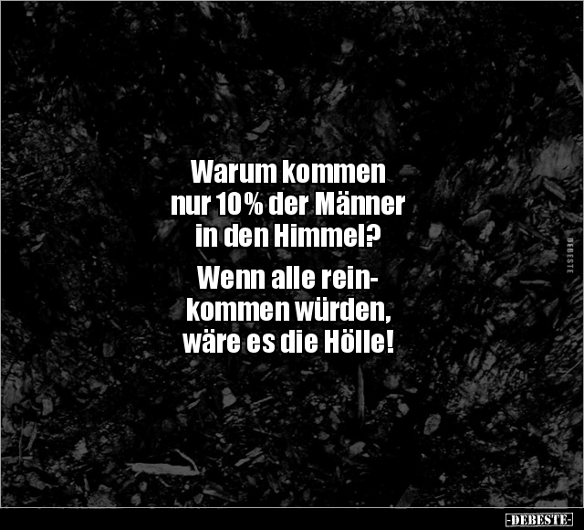 Warum kommen nur 10% der Männer in den Himmel? Wenn alle rein- kommen würden, wäre es die Hölle!