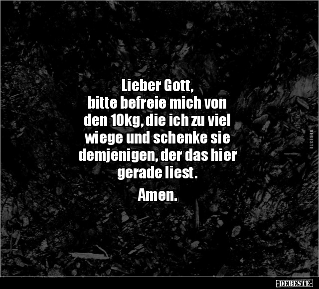 Lieber Gott, bitte befreie mich von den 10kg, die ich zu viel wiege und schenke sie demjenigen, der das hier gerade liest. Amen.