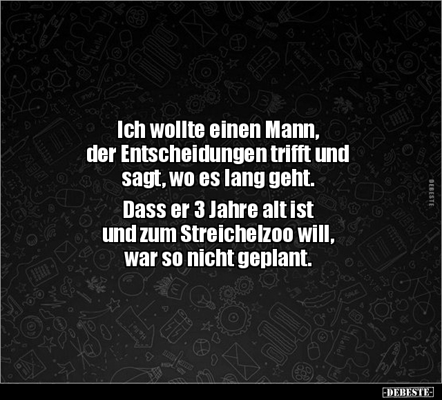 Ich wollte einen Mann, der Entscheidungen trifft und sagt, wo es lang geht. Dass er 3 Jahre alt ist und zum Streichelzoo will, war so nicht geplant.
