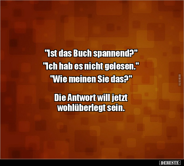 "Ist das Buch spannend?" "Ich hab es nicht gelesen." "Wie meinen Sie das?" Die Antwort will jetzt wohlüberlegt sein.