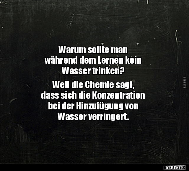 Warum sollte man während dem Lernen kein Wasser trinken? Weil die Chemie sagt, dass sich die Konzentration bei der Hinzufügung von Wasser verringert.