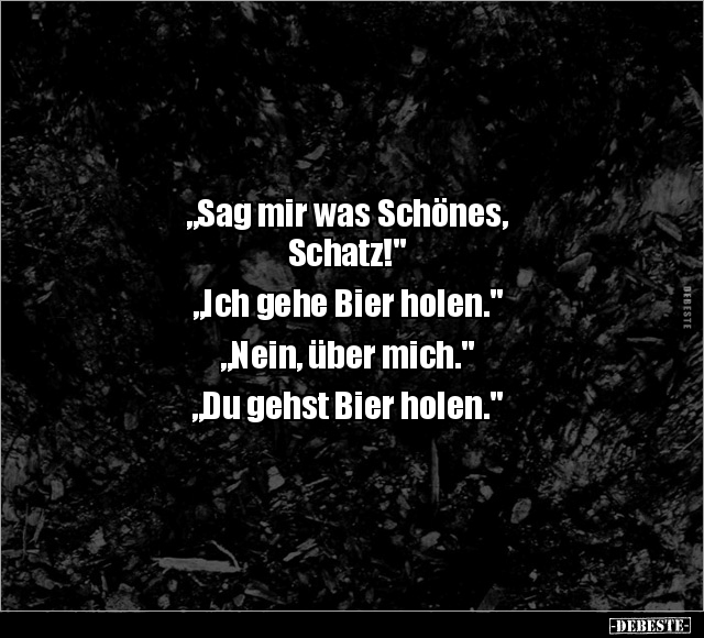 „Sag mir was Schönes, Schatz!" „Ich gehe Bier holen." „Nein, über mich." „Du gehst Bier holen."