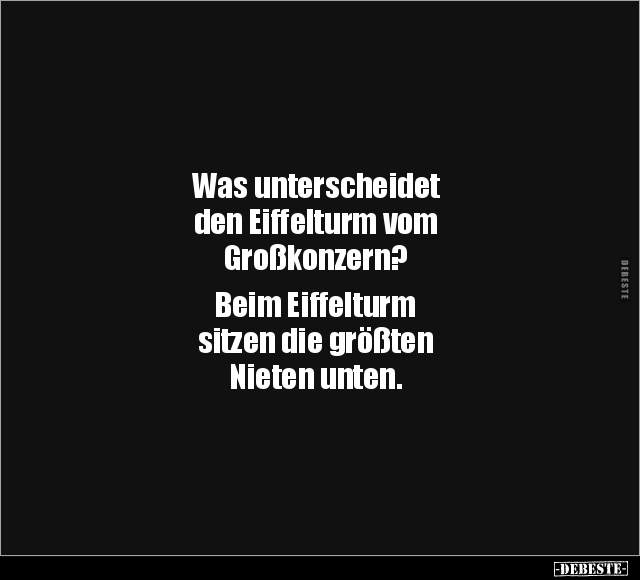 Was unterscheidet den Eiffelturm vom Großkonzern? Beim Eiffelturm sitzen die größten Nieten unten.