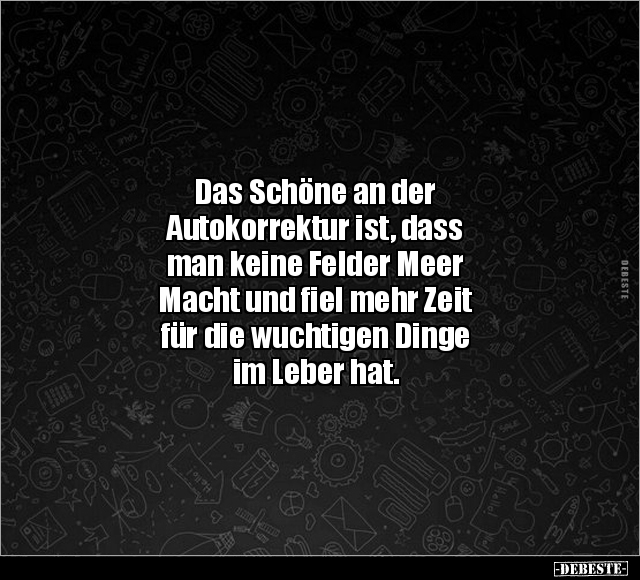 Das Schöne an der Autokorrektur ist, dass man keine Felder Meer Macht und fiel mehr Zeit für die wuchtigen Dinge im Leber hat.