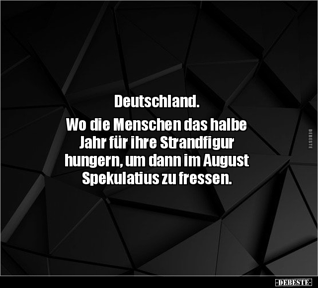 Deutschland. Wo die Menschen das halbe Jahr für ihre Strandfigur hungern, um dann im August Spekulatius zu fressen.