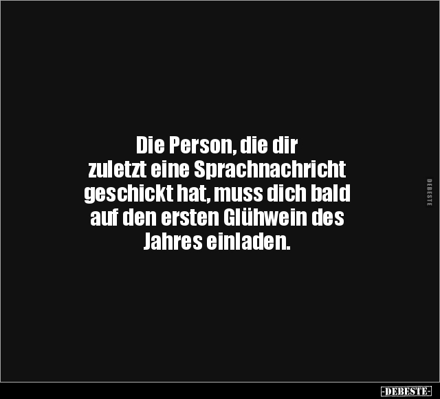 Die Person, die dir zuletzt eine Sprachnachricht geschickt hat, muss dich bald auf den ersten Glühwein des Jahres einladen.