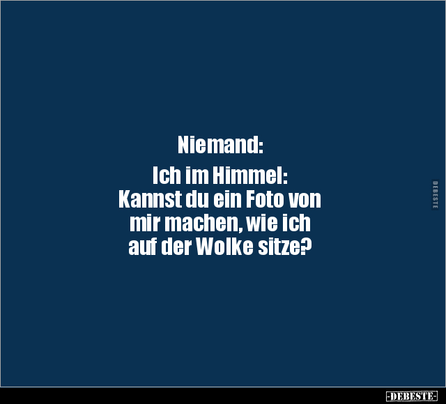 Niemand: Ich im Himmel: Kannst du ein Foto von mir machen, wie ich auf der Wolke sitze?