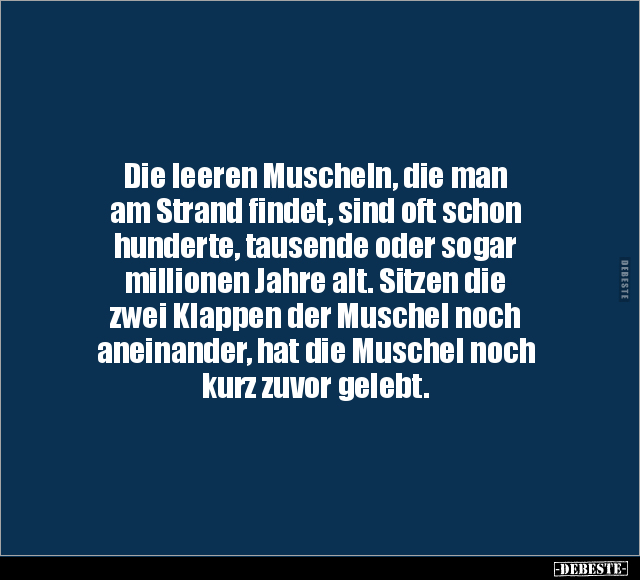 Die leeren Muscheln, die man am Strand findet, sind oft schon hunderte, tausende oder sogar millionen Jahre alt. Sitzen die zwei Klappen der Muschel noch aneinander, hat die Muschel noch kurz zuvor gelebt.