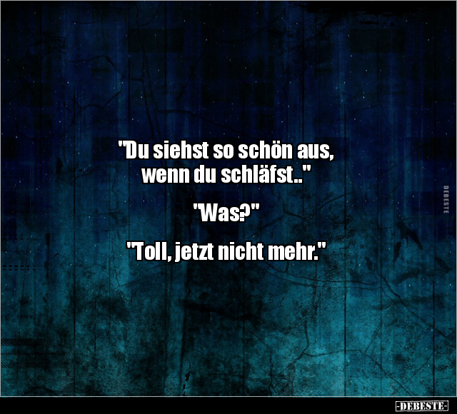 "Du siehst so schön aus, wenn du schläfst.." "Was?" "Toll, jetzt nicht mehr."