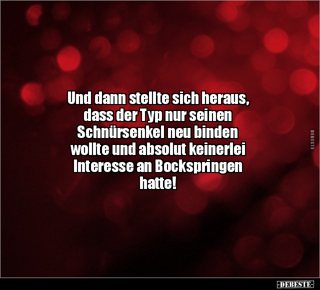 Und dann stellte sich heraus, dass der Typ nur seinen Schnürsenkel neu binden wollte und absolut keinerlei Interesse an Bockspringen hatte!