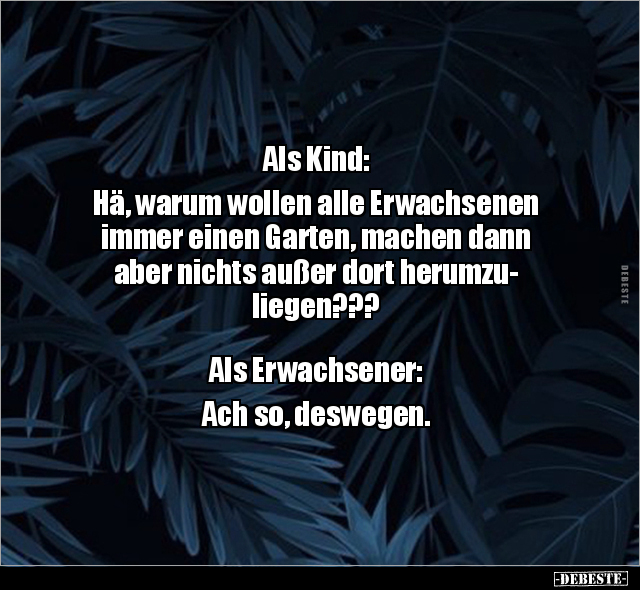 Als Kind: Hä, warum wollen alle Erwachsenen immer einen Garten, machen dann aber nichts außer dort herumzu- liegen??? Als Erwachsener: Ach so, deswegen.