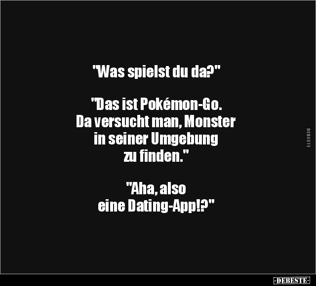 "Was spielst du da?" "Das ist Pokémon-Go. Da versucht man, Monster in seiner Umgebung zu finden." "Aha, also eine Dating-App!?"